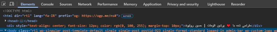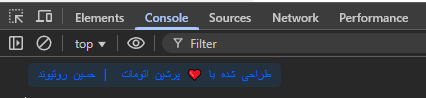 Inspect را بزنید و وارد تب Console شوید تا امضای ما را ببینید.