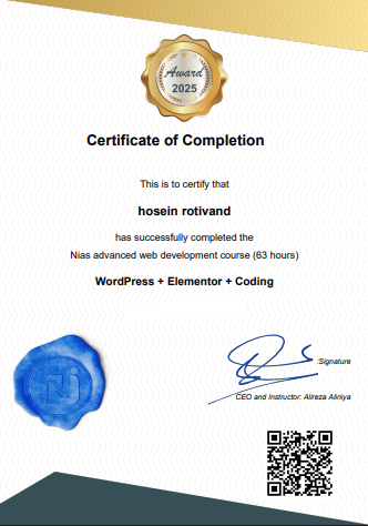 من حسین روتیوند، متخصص طراحی وب و اتوماسیون کسبوکار هستم. از سال ۱۴۰۰ فعالیت حرفهای خود را در زمینه طراحی سایت آغاز کردم و به مرور با کسب تجربه و گذراندن دورههای تخصصی، مسیر خود را به سمت توسعه و اتوماسیون گسترش دادم. در سال ۱۴۰۲ دورههای تخصصی سئو را به پایان رساندم و توانستم دانش بهینهسازی سایت برای موتورهای جستجو را در پروژههای مختلف پیادهسازی کنم. سال ۱۴۰۳ با تمرکز بر کدنویسی و توسعه قالبهای اختصاصی، توانایی طراحی وبسایتهای منحصربهفرد و سازگار با نیاز مشتریان را کسب کردم. از سال ۱۴۰۴ نیز وارد حوزه n8n و اتوماسیون کسبوکارها شدم تا با ترکیب طراحی وب و هوشمندسازی فرآیندها، راهکارهای مدرن و کارآمد برای رشد کسبوکارها ارائه دهم. ابزارها و مهارتهای من شامل: طراحی وب با HTML5، CSS3 و JavaScript وphp توسعه قالبهای اختصاصی وردپرس بهینهسازی وبسایت برای موتورهای جستجو (SEO) پیادهسازی اتوماسیون با n8n ایجاد راهکارهای هوشمند برای کسبوکارها برای من طراحی سایت و اتوماسیون، صرفاً یک کار نیست؛ بلکه یک هنر و علاقه شخصی است. هدفم این است که با ارائه راهکارهای خلاقانه و حرفهای، به رشد و موفقیت کسبوکارها کمک کنم.